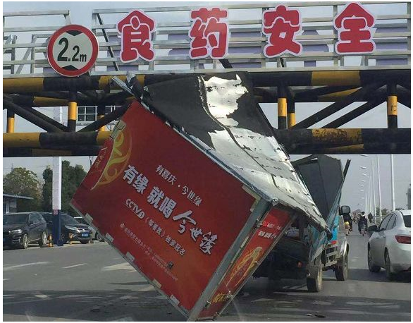 还是被2.2米高的限高栏拦了腰