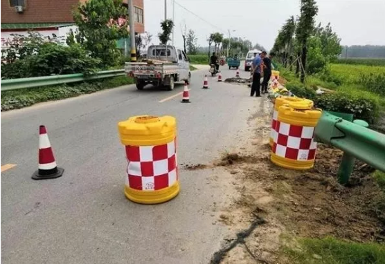 日前,阜南地区连降暴雨,阜南分局在道路巡查时发现X056南陶路李寨村K9+200处涵洞砖砌挡墙被暴雨冲毁,导致路肩出现8长、2.2米深的塌方路段,存在较大安全隐患。分局立即对该路段设置临时安全防护设施